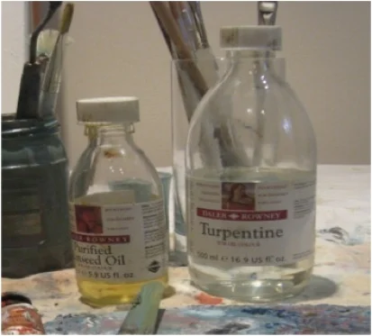 I use a mixture of English Distilled Turpentine, with a good Purified Linseed Oil. When I work normally I would probably mix around 2 or 3 to 1 in favour of turpentine. When I work glazes, I would tend to use a greater portion in Linseed oil to help increase the transparency of the colour - probably 50:50. This is especially true when I paint dark shades.